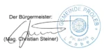 Die für das Verfahren eingereichten Unterlagen liegen bis zum Tag vor der Bauverhandlung während der Amtsstunden im Gemeindeamt Proleb zur allgemeinen Einsicht auf.