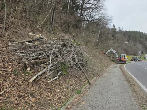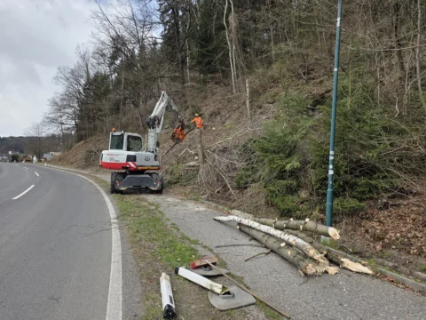 Durch den letzten Schneefall entstand entlang des östlichen Geh- und Radweges eine beachtliche Gefahr wegen möglichem Baumbruchs.