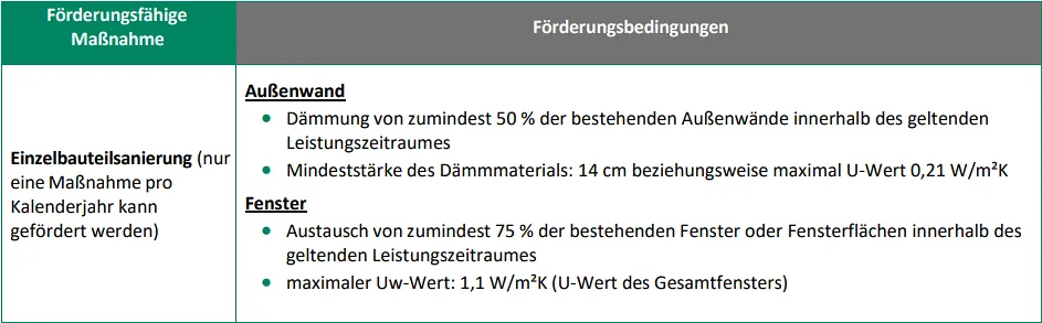 Gefördert werden thermische Sanierungen im mehrgeschossigen Wohnbau sowie bei Reihenhausanlagen. Förderungsfähig sind umfassende Sanierungen nach klimaaktiv Standard oder „guter Standard“ sowie die umfassende Fenstersanierung des gesamten Gebäudes bzw. der Reihenhausanlage.