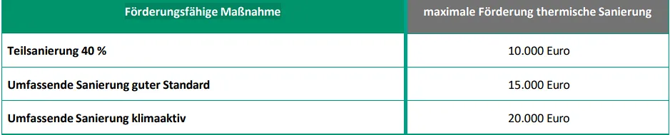 Für größere Sanierungen ab einer Reduktion des Heizwärmebedarfs von mind. 40 % bzw. auf max. 56,44 kWh/m²a oder max. 44 kWh/m²a gibt es folgende max. Förderpauschalen: