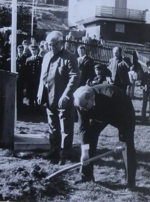 Baumeister Ing. Stettin erstattete den Baubericht, der von der Bevölkerung mit Interesse aufgenommen wurde. Unter den geladenen Gästen sah man Prof. Steiner, Pfarrer Seitz, Volksschuldirektor Feichter und den damaligen BRO und jetzigen Bürgermeister Maier.