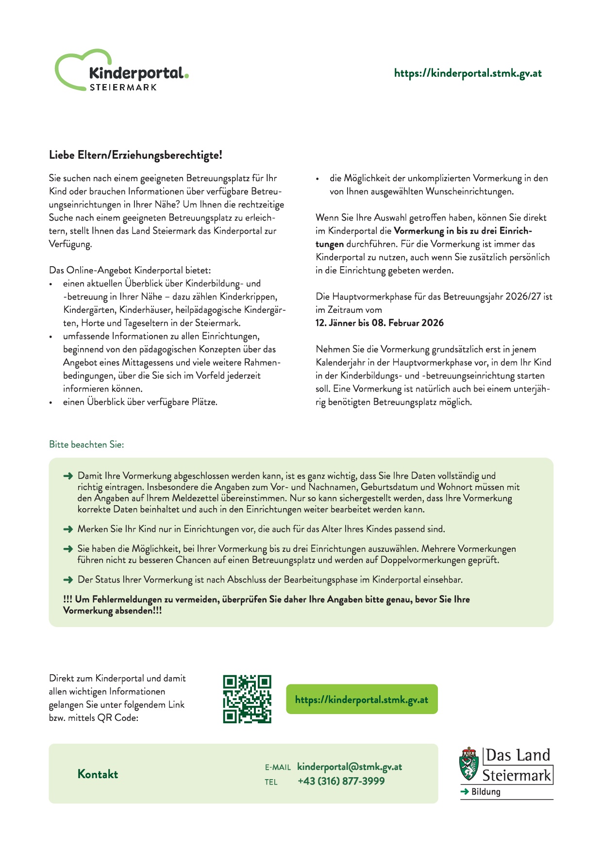 Vormerkung Kinderbetreuungseinrichtung über KIPO