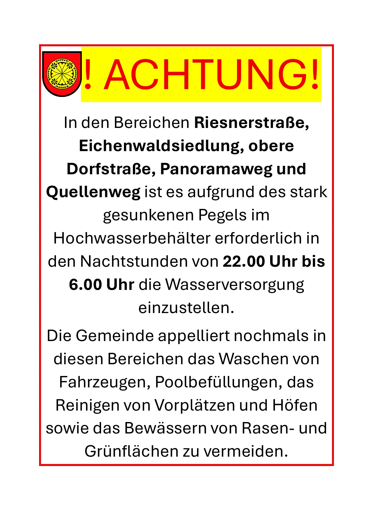 wichtige Information zur Wasserversorgung